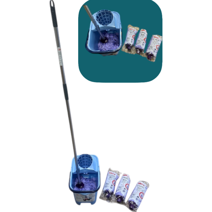 Discover the ideal solution for anyone who wants to clean their floors quickly, hygienically, and effortlessly. This complete starter set for a mop system includes 4 high-quality microfiber Spanish mops, a sturdy handle, and a professional bucket with a press. Everything you need to get started right away.